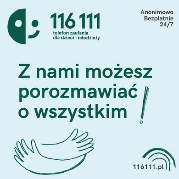 116 111 to bezpłatny, ogólnopolski telefon zaufania dla dzieci i młodzieży prowadzony przez Fundację Dajemy Dzieciom Siłę