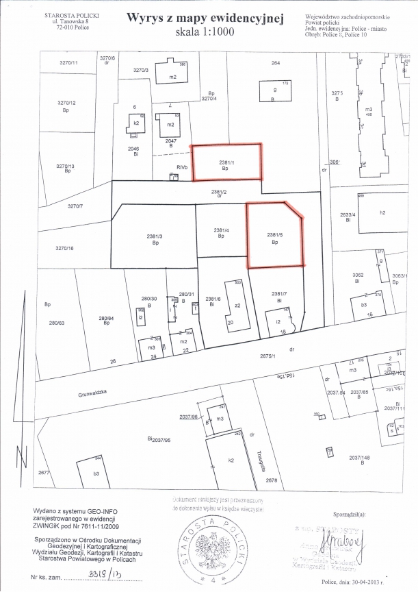1) Police, działka nr 2381/1 (niezabudowana)
