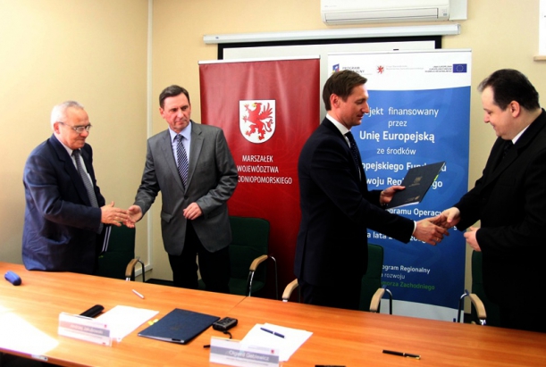 - Dzięki podpisanym dziś dwóm umowom obszary wykluczone cyfrowo tzw. białe plamy uzyskają szerokopasmowy dostęp do internetu. To szczególnie powiaty stargardzki, drawski, łobeski,, choszczeński czy goleniowski. Łączna wartość obu projektów to kwota ponad 34.000.000 złotych, z czego dofinansowanie ze środków RPO wyniesie blisko 17.000.000 złotych. Co najważniejsze, dzięki realizacji obu projektów powstanie 200 kilometrów sieci światłowodowej, która umożliwi mieszkańcom korzystanie z szerokopasmowego internetu. To obecnie standard w korzystaniu z usług publicznych, dlatego życzę, aby szerokopasmowy internet najpóźniej po pierwszej połowy 2015 roku był dostępny dla mieszkańców powiatów objętych projektami. Dokładamy dziś kolejne umowy podpisywane w tym zakresie, których łączna kwota wyniosła prawie już 70 000 000 złotych – mówił marszałek Olgierd Geblewicz.