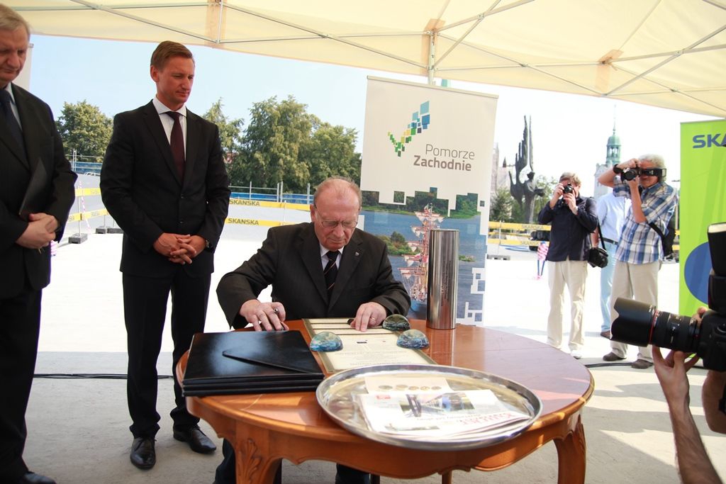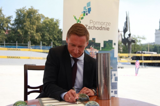 Uroczystość wmurowania Aktu Erekcyjnego pod Centrum Dialogu „Przełomy” odbyła się dziś, w piątek 30 sierpnia 2013 r., z udziałem marszałka Olgierda Geblewicza, Andrzej Milczanowskiego, dyrektora Muzeum Narodowego w Szczecinie Lecha Karwowskiego, a także uczestników wydarzeń sierpniowych, przedstawicieli ówczesnej opozycji oraz środowisk kombatanckich.