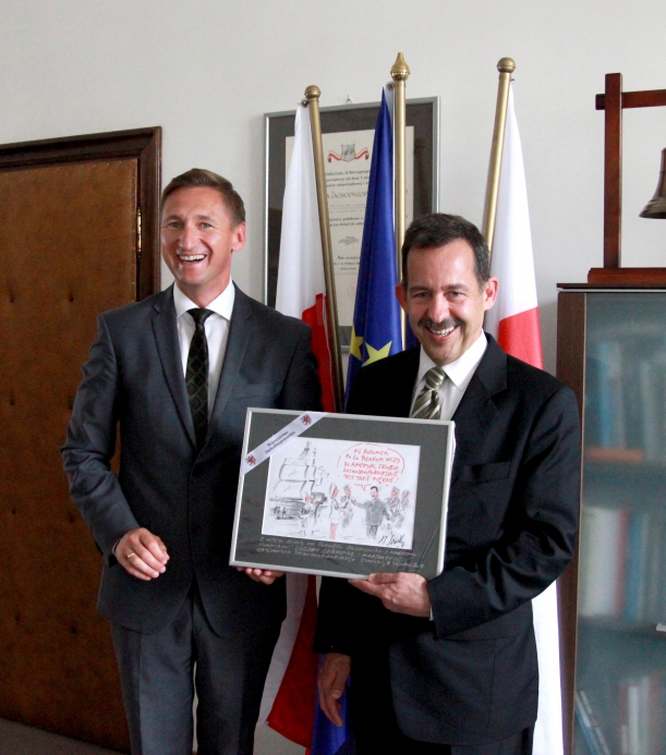Ambasador USA Stephen Mull przebywa z wizytą na Pomorzu Zachodnim. Dziś, w czwartek 8 sierpnia 2013 r. spotkał się Marszałkiem Województwa Zachodniopomorskiego Olgierdem Geblewiczem. To jego pierwsza wizyta od kiedy pełni on misję dyplomatyczną w Polsce. Pobyt ambasadora USA w Zachodniopomorskiem jest efektem wysłanego w  lutym br, zaproszenia, na które Stephen Mull odpowiedział pozytywnie już 7 marca.