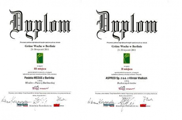 W rankingu trzech redakcji: Twojej Gazety Berlin, Berliner Tageszeitung oraz portalu internetowego www.polacywberlinie.de, w kategorii najbardziej sprawnej i otwartej na klienta firmy, spółka ASPROD z Klinisk Wielkich zajęła II miejsce, a tuż za nią uplasowała się na III miejscu Pasieka MEDUS z Barlinka.
