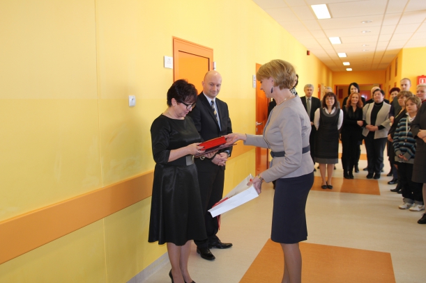 Pani marszałek złożyła również gratulacje od Marszałka Wojówdztwa Olgierda Geblewicza, któremu przez fatalną pogodę nie udało się dotrzeć na otwarcie oraz wręczyła pamiątkę okolicznościową Województwa Zachodniopomorskiego z okazji przystąpienia Szkoły Podstawowej nr 7 w Szczecinie do rządowego programu „Cyfrowa Szkoła”.