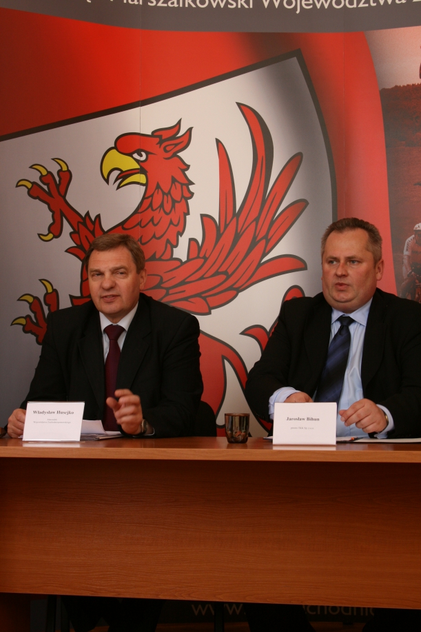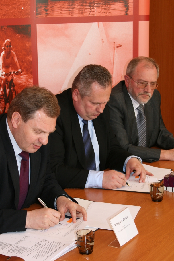 Podpisy pod dokumentem złożyli: w imieniu Zarządu Województwa Zachodniopomorskiego marszałek województwa Władysław Husejko, w imieniu beneficjenta, Telewizji Kablowej Koszalin - prezes spółki Jarosław Bihunoraz wiceprezes zarządu Stanisław Górawski.