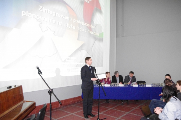 Temat spotkania dotyczył zintegrowanego podejścia do planowania przestrzennego na morzu. Spotkanie uroczyście otworzył marszałek Olgierd Geblewicz, witając wszystkich gości w Szczecinie. Marszałek zwrócił uwagę, że sprawy gospodarki morskiej, jej przyszłości w perspektywie do roku 2030, mają ważne znaczenie ze względu na strategiczne położenie w Regionie Bałtyckim, który staje się jednym z najszybciej rozwijających się obszarów Unii Europejskiej i dotyczy to wszystkich województw nadmorskich. Kwestia ujęcia problemów zagospodarowania obszarów morskich i nadmorskich w projekcie KPZK 2030 była zatem przedmiotem szczególnego zainteresowania Województwa Zachodniopomorskiego w toku dotychczasowych konsultacji. Wyrażając zadowolenie z ujęcia tej problematyki w projekcie Koncepcji, marszałek zwrócił jednak uwagę na potrzebę uzupełnienia i korekty tych fragmentów dokumentu, które dotyczą roli portów morskich, ich dostępności, prawno-międzynarodowych uregulowań granic polskich obszarów morskich i planowania na obszarach morskich. Wspomniał, że w dniu 8 marca, Sejmik Województwa Zachodniopomorskiego przyjął stanowisko w sprawie zagrożeń dla rozwoju gospodarki morskiej w województwie zachodniopomorskim. Wymienił wśród nich zagrożenia wynikające z ułożenia gazociągu Nord Stream na dnie toru podejściowego do Świnoujścia, z możliwości zaniechania budowy infrastruktury komunikacyjnej w Środkowoeuropejskim Korytarzu Transportowym, z planowanej zmiany statusu świetnie prosperującego przedsiębiorstwa, jakim jest Polska Żegluga Morska, wreszcie z zagrożenia dla dalszego istnienia Szczecińskiej Stoczni Remontowej Gryfia.