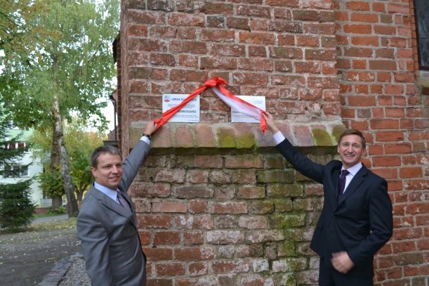 Wczoraj (17 października br.) marszałek Olgierd Geblewicz odwiedził Nowogard, aby wspólnie z burmistrzem Robertem Czaplą i ks. proboszczem Grzegorzem Legutko, dokonać odbioru prac remontowych, sfinansowanych ze środków budżetu województwa na 2012 r., które polegały na wykonaniu izolacji przeciwwilgociowej w zabytkowym kościele.