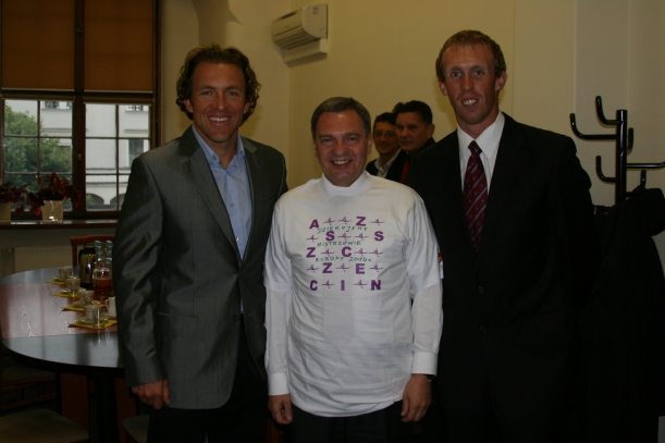 Wczoraj (14 września br.) marszałek Władysław Husejko gościł u siebie złotych medalistów w czwórce podwójnej – reprezentujących AZS Szczecin Marka Kolbowicza i Konrada Wasielewskiego - którzy zdobyli tytuł Mistrzów Europy w czasie zawodów w portugalskim Montemor-o-Velho.