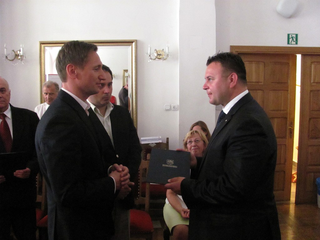 Burmistrz Białego Boru Franciszek Lech Kwaśniewski i zastępca prezydenta Szczecina Mariusz Kądziołka z rąk marszałka województwa Olgierda Geblewicza odebrali w poniedziałek, 6 czerwca, dyplomy II edycji Konkursu Marszałka „Najlepsza przestrzeń publiczna Województwa Zachodniopomorskiego”. W uroczystości na Zamku Książąt Pomorskich w Szczecinie oprócz delegacji laureatów uczestniczyli wicemarszałek województwa Wojciech Drożdż oraz prof. Marek Dutkowski, przewodniczący Wojewódzkiej Komisji Urbanistyczno-Architektonicznej.