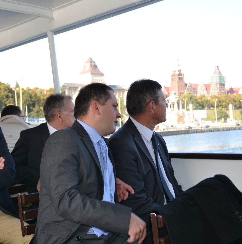 Blisko trzy godziny trwał rekonesansowy rejs po Odrze, którego celem była prezentacja możliwości rozwoju i aktualnego stanu nadodrzańskich terenów Szczecina w obszarach rozwoju portu, turystyki morskiej i rzecznej oraz przemysłu stoczniowego.