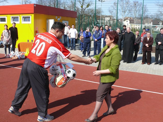 Ponadto wicemarszałek Witold Jabłoński przekazał na ręce dyrektor szkoły sprzęt sportowy, z którego będzie korzystać młodzież, uprawiająca sporty na nowy wybudowanych boiskach