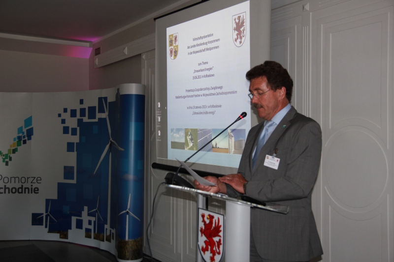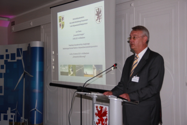 Minister Thorenz w swoim słowie wstępnym powiedział, że już dziś charakterystyczne dla Meklemburgii-Pomorza Przedniego jest to, że prąd jest tu w 50% wytwarzany poprzez wykorzystanie odnawialnych źródeł energii, a celem jest jak najszybsze całkowite pokrycie zapotrzebowania na prąd właśnie ze źródeł odnawialnych. Jest szansa na osiągnięcie tego celu, gdyż rośnie zaangażowanie mieszkańców i gmin w realizację innowacyjnych projektów energetycznych. Dzisiejsze spotkanie – podkreślił – jest doskonałą okazją do tego, aby o swoich zamierzeniach porozmawiać z polskimi partnerami i przedyskutować możliwości opracowania wspólnych polsko-niemieckich projektów.