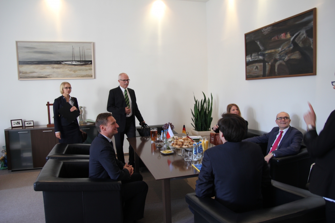 Następnie głos zabrał premier kraju związkowego Meklemburgia-Pomorze Przednie Erwin Sellering podkreślając wagę tworzenia Akademii Prawa Niemieckiego w Szczecinie i akcentując kilkunastoletnią współpracę między regionami, której efekty widzimy na co dzień w relacjach polsko-niemieckich.