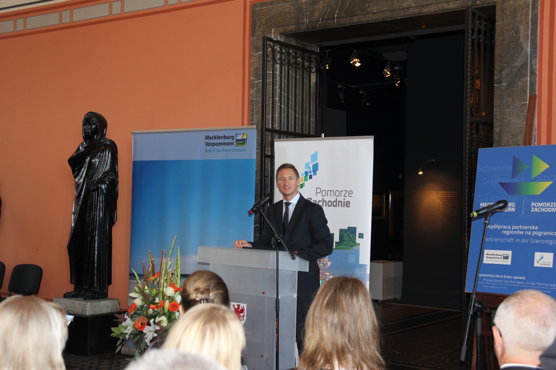 Przed oficjalną inauguracją prezentacji Meklemburgii-Pomorza Przedniego odbyło się spotkanie marszałka Województwa Zachodniopomorskiego Olgierda Geblewicza z premierem Erwinem Selleringiem. Marszałek podkreślił, że tylko silny gospodarczo Szczecin może być zauważony w Europie. Zaznaczył jego wyjątkową rolę, jeśli chodzi o rozwój Meklemburgii Pomorza Przedniego ze względu na ponadgraniczne oddziaływanie. Obaj rozmówcy zauważyli, że jest duża potrzeba dalszego rozwijania projektów dotyczących medycyny. Marszałek wspomniał o flagowym projekcie Telemedycyny i projekcie dotyczącym badań przesiewowych noworodków. Premier Sellering zwrócił uwagę na fakt, że Polacy świętują z Niemcami Zjednoczenie Niemiec. Uczestniczył w spotkaniu w związku z tym świętem w Ambasadzie Polskiej i był bardzo zaskoczony, że Polacy tak entuzjastycznie i przyjaźnie ustosunkowują się do tego święta mimo łączącej nas trudnej historii. To dobrze rokuje na przyszłość.