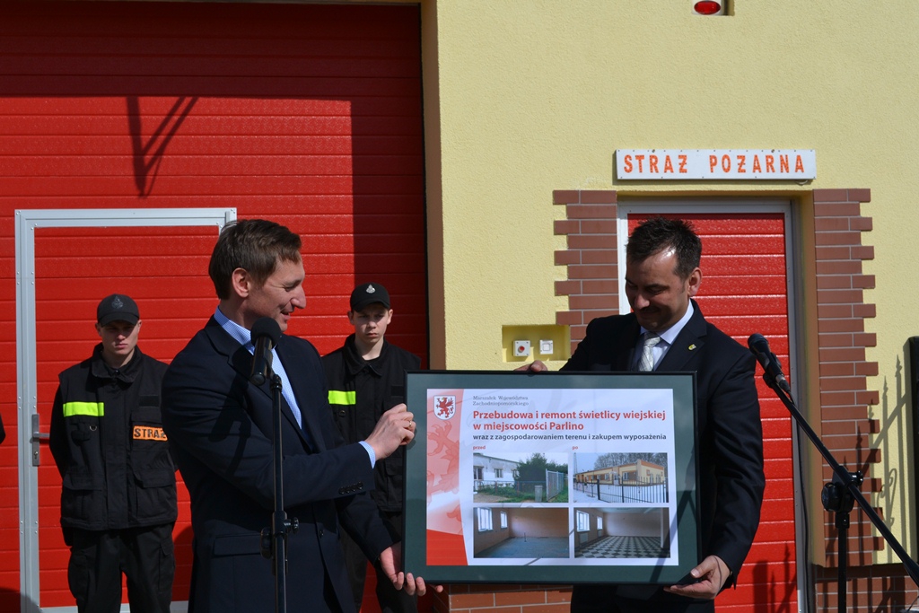 Remont świetlicy trwał ponad rok, a marszałek ponownie przyjechał do Parlina. - Jestem bardzo szczęśliwy, iż mogę być tu z Państwem. Zazwyczaj wszystkich naszych beneficjentów na podpisanie umów zapraszamy na Zamek Książąt Pomorskich w Szczecinie, w przypadku Parlina było odmiennie. Przyjechaliśmy podpisać umowę tutaj, do Parlina. Chciałem się przekonać, w jakim stanie była świetlica odnawiana przy udziale pieniędzy z Programu Rozwoju Obszarów Wiejskich. W tym miejscu chciałbym podziękować Radnym oraz Panu Wójtowi, którzy wyszli z inicjatywą i również dofinansowali tę inwestycję. Dzięki wspólnemu działaniu mamy kompleksowy, wspaniały obiekt, który będzie służył mieszkańcom i ich bezpieczeństwu – mówił marszałek Olgierd Geblewicz. - Dzięki Programowi Rozwoju Obszarów Wiejskich, działaniu „Odnowa i rozwój wsi” podpisaliśmy 160 umów na świetlice wiejskie, łącznie na ten cel przeznaczyliśmy ponad 40 mln zł. Możemy więc powiedzieć że takich miejsc w naszym województwie jest sporo, jednak to świetlicę w Parlinie potraktowaliśmy jako wzorcową i dla mnie będzie pewnym symbolem dobrej współpracy.