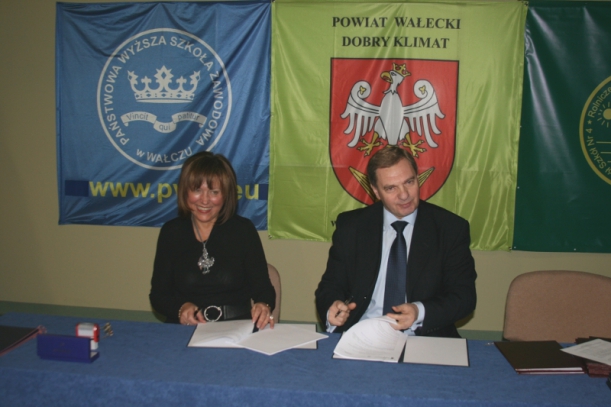 Uroczystość podpisania umów odbyła się w siedzibie Państwowej Wyższej Szkoły Zawodowej w Wałczu przy ul. Wojska Polskiego 99.