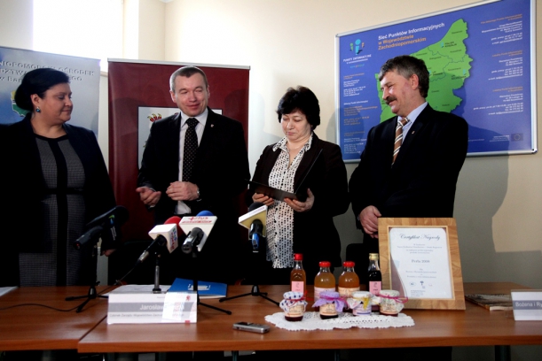 - W tym roku zmieniliśmy nieco charakter naszego stoiska,(zaaranżowanego na chatę rybacką), które oddawało rybacki i morski charakter naszego regionu. Berlin jest przedsionkiem dla naszych producentów do wejścia na rynek niemiecki, tym ważniejszym, że w Berlinie nasi rodacy stanowią największą po mniejszości tureckiej grupę etniczną, także z tego względu ten rynek jest dla nas bardzo ważny – podkreślał marszałek Jarosław Rzepa. - Przyzwyczailiśmy się już, że praktycznie z każdych targów wracamy z nagrodami lub wyróżnieniami i tym razem było podobnie. Bardzo cieszy mnie to, że są to nagrody dla wystawców – mówił Jarosław Rzepa, po czym wraz z dyrektor Zachodniopomorskiego Ośrodka Doradztwa Rolniczego w Barzkowicach Ireną Agatą Łucką przekazał nagrody laureatom. Roman Balewicz ze Szczecina zajął II miejsce w kategorii sprawnej i otwartej na klienta firmy, a państwo Bożena i Ryszard Jaszczowscy z Dolic zajęli III miejsce w kategorii najbardziej sprawnej i otwartej na klienta firm rodzinnych.