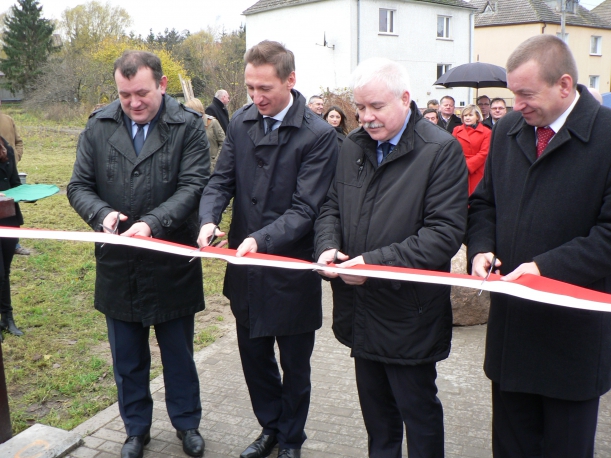 Marszałek Olgierd Geblewicz oraz członek Zarządu Jarosław Rzepa wzięli udział w poniedziałkowym (18 listopada 2013 r.) uroczystym zakończeniu inwestycji w Trzebiatowie, zatytułowanej "Zabezpieczenie przeciwpowodziowe doliny rzeki Regi ze szczególnym uwzględnieniem miasta Trzebiatów".