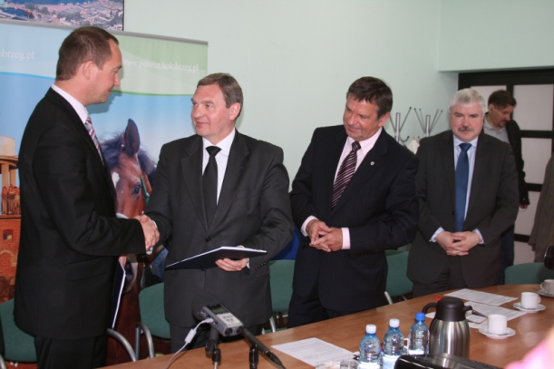W podpisaniu umowy w Starostwie Powiatowym w Kołobrzegu uczestniczyli: marszałek województwa zachodniopomorskiego Władysław Husejko, członek Zarządu Województwa Marek Hok, starosta kołobrzeski Artur Mackiewicz, wicestarosta kołobrzeski Jerzy Kołakowski, starosta gryficki Kazimierz Sać, zastępca wójta gminy Kołobrzeg Krystyna Mikołajczak, burmistrz gminy Trzebiatów Sławomir Ruszkowski oraz poseł na Sejm RP Konstanty Tomasz Oświęcimski, który również wspierał projekt drogowy.