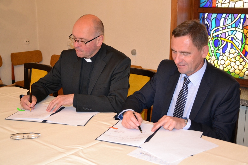 Wicemarszałek Jakubowski dokument podpisał w siedzibie parafii, którą reprezentowali ks. proboszcz Antoni Tofil oraz konserwator diecezjalny ks. Henryk Romanik.