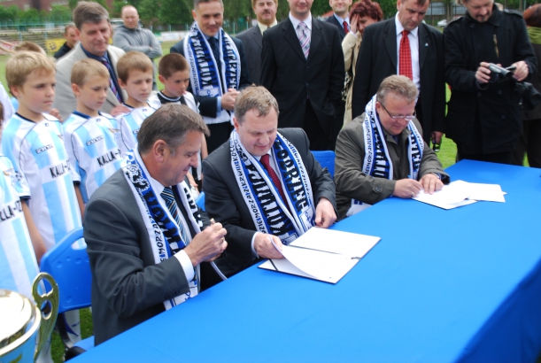 W uroczystości złożenia podpisów pod umową o dofinansowanie tej sportowej inwestycji uczestniczyli: marszałek województwa zachodniopomorskiego Władysław Husejko, członek Zarządu Województwa Marek Hok, prezydent Gminy Miasta Kołobrzeg Janusz Gromek.
