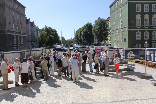 Wystawa poświęcona dokonaniom polskich żeglarzy, kapitanów, jachtów i żaglowców pływających pod biało-czerwoną banderą stanęła przy pl. Armii Krajowej 1 na placu przy Urzędzie Miasta Szczecin.
