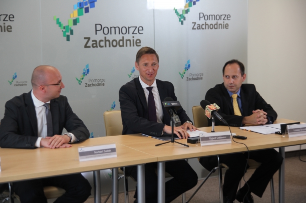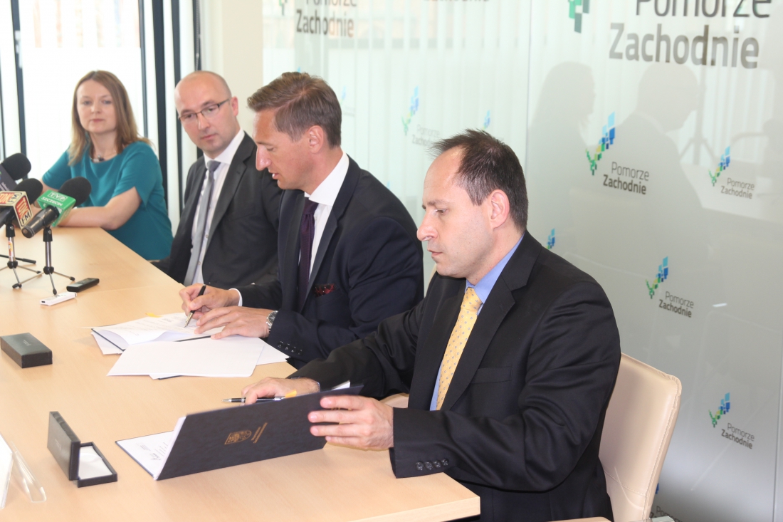 7 potężnych turbin, każda o mocy ponad 1,5 megawata, wytwarza w okolicach Reska, już od końca września ubiegłego roku, dodatkową moc energetyczną dla Pomorza Zachodniego. To efekt realizacji projektu pn. „Budowa farmy wiatrowej o mocy 10,5 MW w gminie Resko”. Inwestycja otrzyma prawie 16 milionów złotych wsparcia ze środków Regionalnego Programu Operacyjnego Województwa Zachodniopomorskiego na lata 2007-2013. Umowę umożliwiającą refundację poniesionych kosztów podpisali dziś, we wtorek, 10 czerwca br., w Szczecinie marszałek Województwa Zachodniopomorskiego Olgierd Geblewicz i przedstawiciele spółki PGE „Energia Odnawialna”: wiceprezes Norbert Sadek i zastępca dyrektora departamentu finansów Łukasz Grzonkowski.