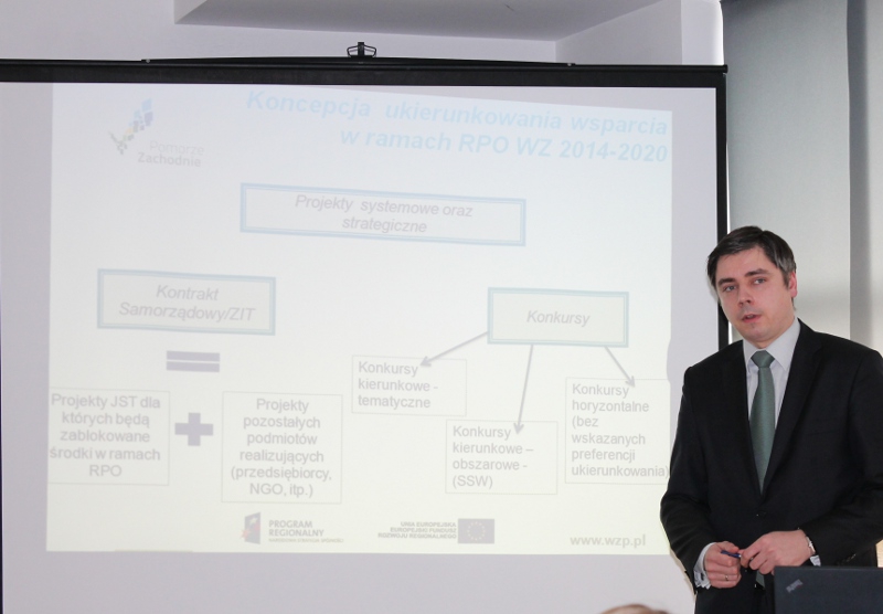 Wicemarszałkowi Jakubowskiemu towarzyszył z prezentacją tematyczną dyrektor Wydziału Zarządzania Strategicznego Urzędu Marszałkowskiego, Marcin Szmyt. Zaprezentował on system finansowania RPO WZ 2014-20, w tym - obok Kontraktu Samorządowego - konkursy tematyczne i terytorialne.