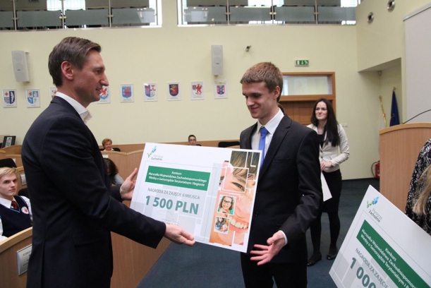 Poznaliśmy zwycięzców drugiej edycji Konkursu Marszałka Województwa Zachodniopomorskiego Wiedzy o Samorządzie Terytorialnym i Regionie. W środę 26 marca 2014 roku, w budynku Sejmiku Województwa Zachodniopomorskiego odbył się finał oraz wręczenie nagród przez marszałka Olgierda Geblewicza. Najlepsza okazała się Magdalena Honkowicz z Gimnazjum im. Marii Skłodowskiej-Curie w Golczewie.