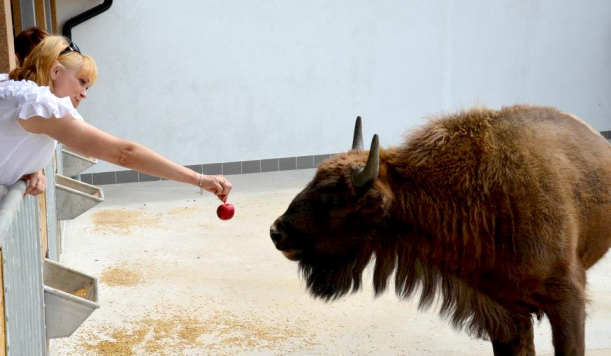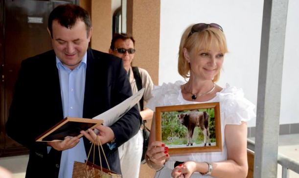 Podczas symbolicznych chrzcin Gryfusia mały żubr otrzymał od swoich rodziców chrzestnych poczęstunek w postaci jabłek i marchewek. Za około 8 miesięcy Gryfuś zostanie wypuszczony na wolność i dołączy do stada, które liczy ok. 80 osobników.