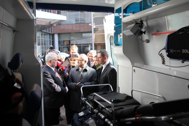 Podczas spotkania, za pośrednictwem Ambasadora Ukrainy w Polsce Markijana Malskiego, wicemarszałek Jakubowski przekazał na Ukrainę dwie karetki z pełnym wyposażeniem.