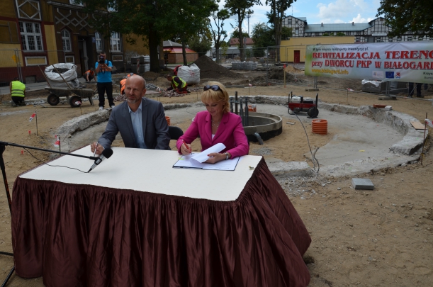 W listopadzie tego roku teren wokół dworca PKP w Białogardzie doczeka się pełnej rewitalizacji. Odnowione miejsce w tej części miasta stanie się jego wizytówką. Będzie to możliwe dzięki wsparciu Regionalnego Programu Operacyjnego Województwa Zachodniopomorskiego na lata 2007-2013. Konferencja prasowa połączona z uroczystym podpisaniem umowy odbyła się wczoraj, w czwartek, 28 sierpnia br. w Białogardzie. W wydarzeniu udział wzięła członek Zarządu Województwa Zachodniopomorskiego Anna Mieczkowska i burmistrz Białogardu Krzysztof Bagiński.