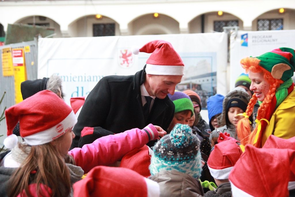 Na zaproszenie marszałka Województwa Zachodniopomorskiego Olgierda Geblewicza w wydarzeniu uczestniczą również dzieci z domów dziecka, świetlic środowiskowych i innych placówek opiekuńczo-wychowawczych oraz dzieci ze szczecińskich przedszkoli i szkół podstawowych. Od rana Zamek Książąt Pomorskich opanowali najmłodsi, którzy zostali przywitani przez Skrzaty z Agencji Muzycznej Onomatopeja, która zapewnia program artystyczny imprezy. Kolorowe bajkowe postacie zadbały o to, by dzieci dobrze się bawiły przy zabawach ruchowych i tanecznych. Od godz. 11.30 rozpoczęło się przystrajanie przez dzieci choinek w ramach konkursu dla najmłodszych „Choinka pełna cudów”. W ubieraniu drzewek pomógł marszałek Olgierd Geblewicz, który również miał zdecydować, które drzewko wygra w konkursie. Jak się okazało, na pierwsze miejsce zasłużyli wszyscy uczestnicy.