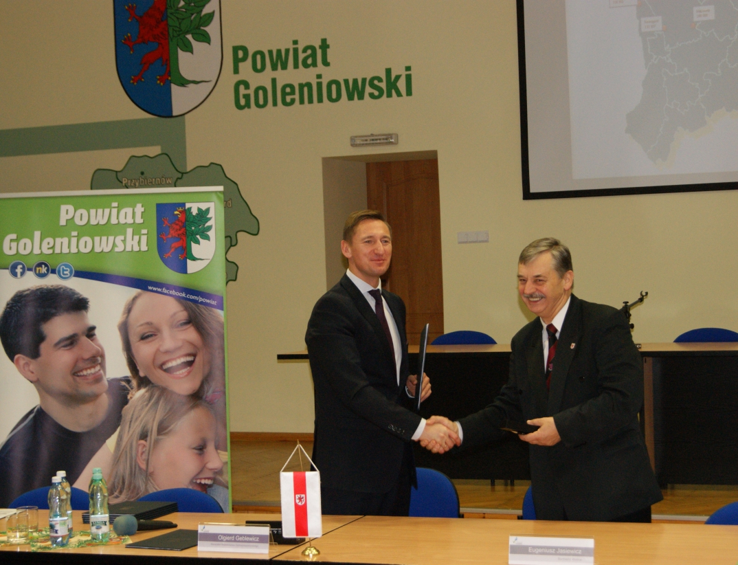 Blisko 28 milionów złotych wsparcia na działania prośrodowiskowe i proekologiczne otrzymają jednostki samorządu terytorialnego Pomorza Zachodniego lub ich zakłady budżetowe. Wsparcie 33 znajdujących się na liście zadań pochodzić będzie ze środków Programu Rozwoju Obszarów Wiejskich na lata 2007-2013. Podpisanie pierwszych 26 umów odbyło się dziś, w piątek, 20 grudnia br. w Goleniowie, Baniach, Boblicach i Karlinie. W wydarzeniu w Goleniowie udział wziął marszałek Olgierd Geblewicz. W pozostałych trzech miejscowościach Zarząd Województwa Zachodniopomorskiego reprezentował wicemarszałek Andrzej Jakubowski.