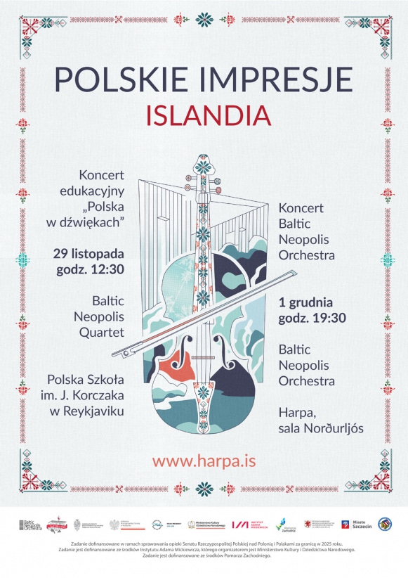 Na przełomie listopada i grudnia 2025 roku w Reykjavíku zabrzmi polska muzyka XX i XXI wieku w wykonaniu Baltic Neopolis Orchestra. To pierwsza w historii wizyta polskiej orkiestry kameralnej w Islandii, a jednocześnie wyjątkowy projekt artystyczny budujący mosty między kulturami Polski i Islandii. Wydarzenie pn. „Polskie Impresje Islandia” odbędzie się pod Patronatem Honorowym Marszałka Województwa Zachodniopomorskiego Olgierda Geblewicza.