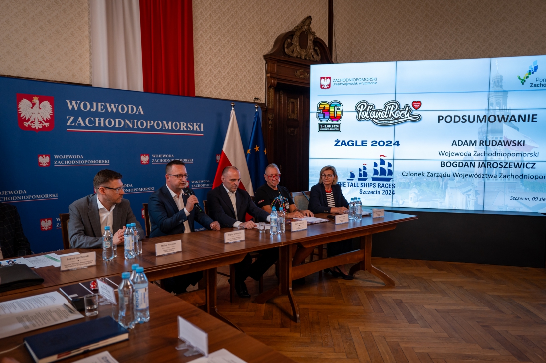 Za nami dwie największe imprezy, które na początku sierpnia odbyły się na Pomorzu Zachodnim. W Zachodniopomorskim Urzędzie Wojewódzkim podsumowano zarówno 30. edycję Pol’and’Rock w Czaplinku i The Tall Ships Races 2024 w Szczecinie. Za sprawną organizację dziękowali m.in. członek zarządu województwa zachodniopomorskiego Bogdan Jaroszewicz i wojewoda zachodniopomorski Adam Rudawski.