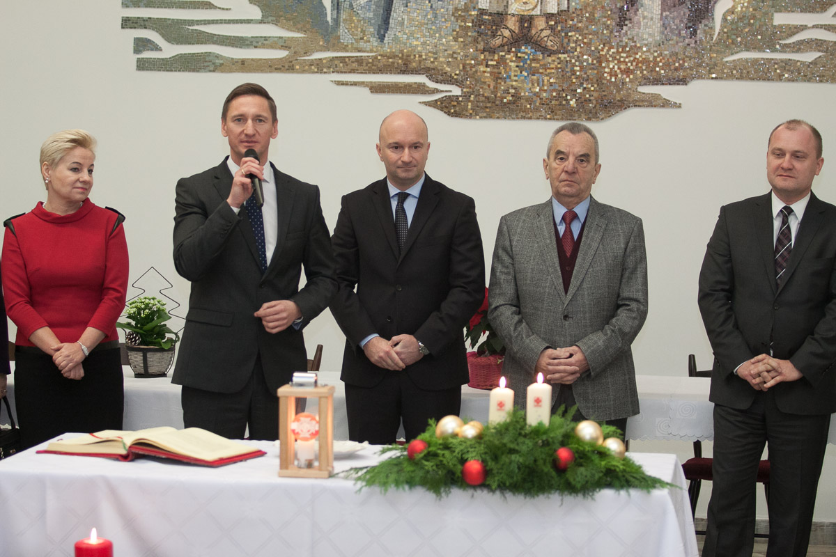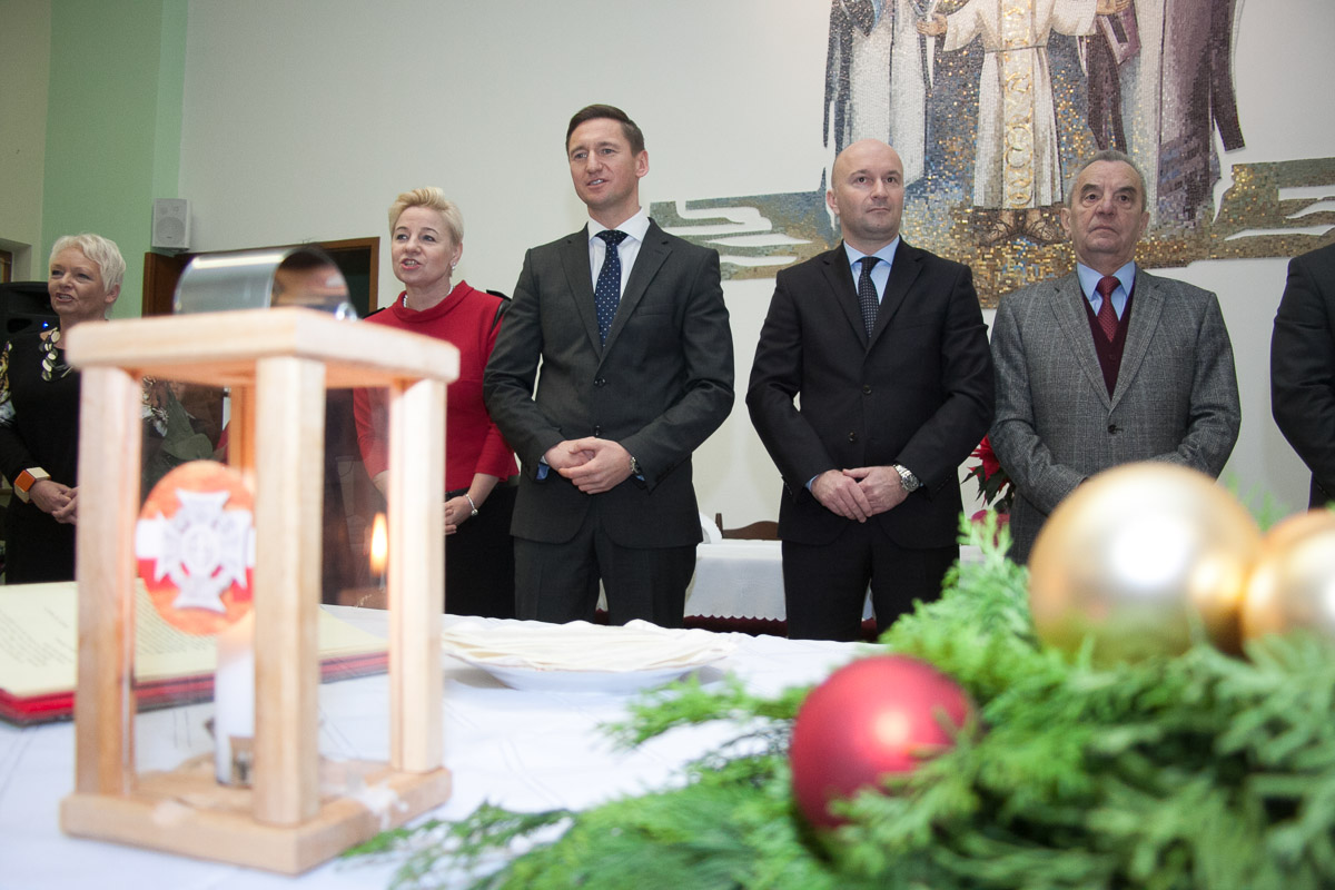 Przedstawiciele środowisk administracji rządowej i samorządowej w województwie, gospodarki, nauki, kultury, oświaty, ochrony zdrowia, służb mundurowych, Kościoła oraz konsulowie honorowi i parlamentarzyści, spotkali się na uroczystym spotkaniu wigilijnym w środę 18 grudnia 2013 r. w Arcybiskupim Wyższym Seminarium Duchownym w Szczecinie.
