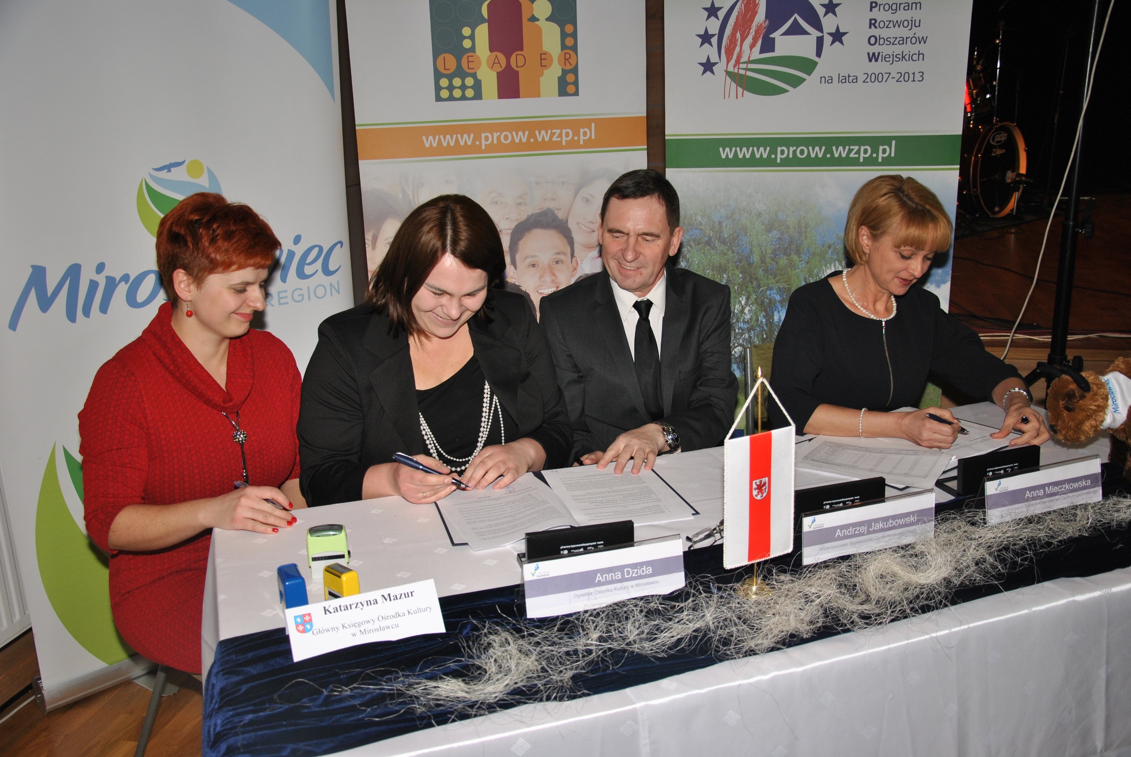 Środki Programu Rozwoju Obszarów Wiejskich na lata 2007-2013 pomogą w organizacji tegorocznych działań kulturalno-społecznych w Mirosławcu. Będą to przedsięwzięcia realizowane w ramach działania 413 „Wdrażanie Lokalnych Strategii Rozwoju” w zakresie „Małych Projektów”. Uroczyste podpisani umów nastąpiło dziś, w piątek, 17 stycznia br., w Mirosławcu. W wydarzeniu udział wziełi: wicemarszałek Województwa Zachodniopomorskiego Andrzej Jakubowski oraz członek Zarządu Województwa Zachodniopomorskiego Anna Mieczkowska.