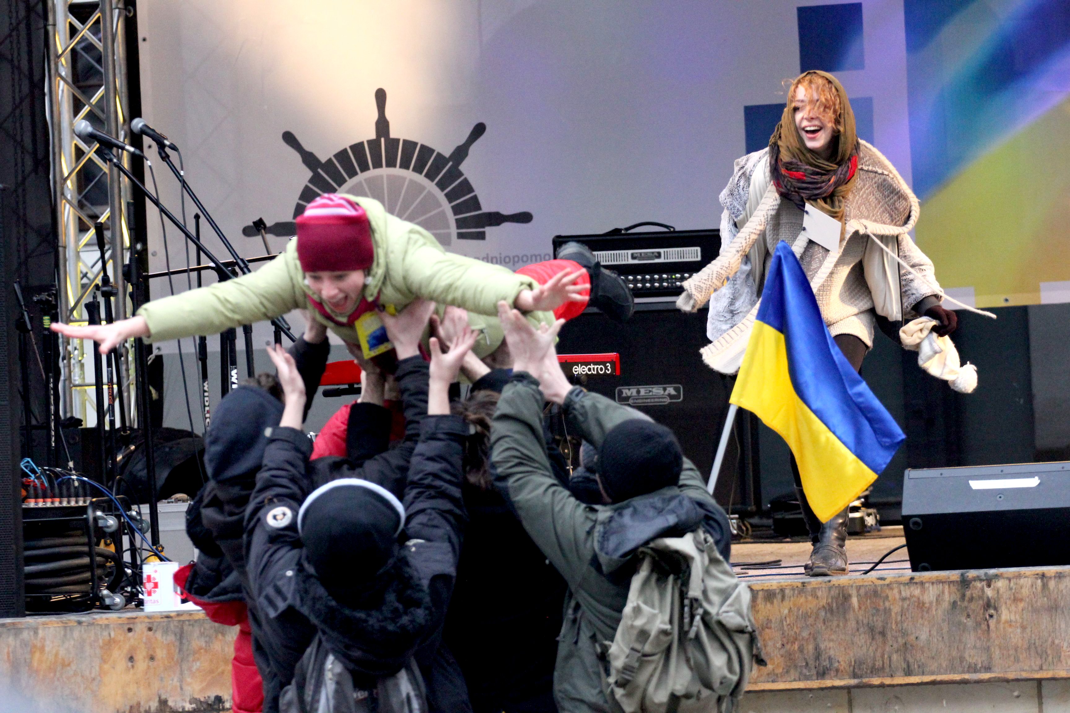 W niedzielę na scenie Zamku Książąt Pomorskich w Szczecinie od godzin poranny aż po wieczór trwały różnorodne inicjatywy artystyczne. Dzień rozpoczął się od żywiołowego występu dwóch orkiestr: Wood & Brass Band oraz Sambal, które rozgrzały zebranych. Kolejne godziny to koncerty szczecińskich i zachodniopomorskich zespołów i muzyków. Wystąpił m.in. folkowy Alepak, w którego repertuarze znalazły się pieśni w języku ukraińskim, utwory Edith Piaf wyśpiewała Klara Gmiter, a jedna z organizatorek akcji śpiewając utwór „Żurawie” zadedykowała go ukraińskim emigrantom Życzę aby nie było więcej przymusowych emigrantów z Ukrainy, aby nikt nie musiał uciekać ze swojej ziemi mówiła Lesja Szulc. Zagrali także Magda Wilento & Szymon Orłowski, Feng Szuja, Namy i szczecinecka grupa Materia, która aby zagrać w Szczecinie przebyła trasę aż z Olsztyna. Nie zabrakło niezwykłych gości swój występ miał również zespół Jazgot, pochodzący z Zakopanego. Zebrani wysłuchali również przemówienia prześladowanego Anatola z Ukrainy Dziękuję Polakom za solidarność z Euromajdanem -  mówił Anatol.