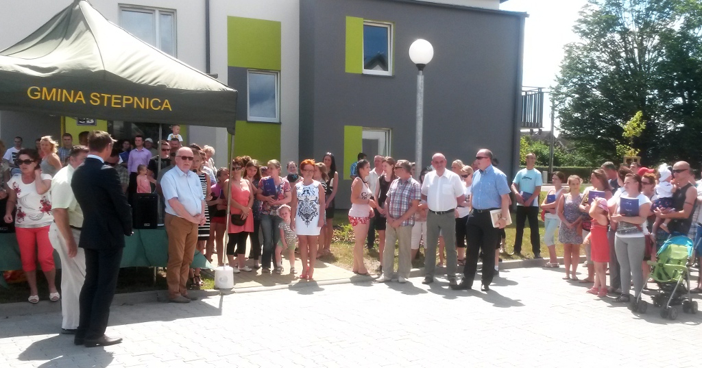 Nowe osiedle mieszkań komunalnych przy ulicy Kolejowej w Stepnicy zostało otwarte w czwartek, 10 lipca br. W uroczystości udział wzięli: marszałek Województwa Zachodniopomorskiego Olgierd Geblewicz i burmistrz Stepnicy Andrzej Wyganowski. Czwartkowe wydarzenie było także okazją do obejrzenia części innych inwestycji w Gmnie Stepnica m.in. współfinansowanych ze środków Regionalnego Programu Operacyjnego Województwa Zachodniopomorskiego na lata 2007-2013.