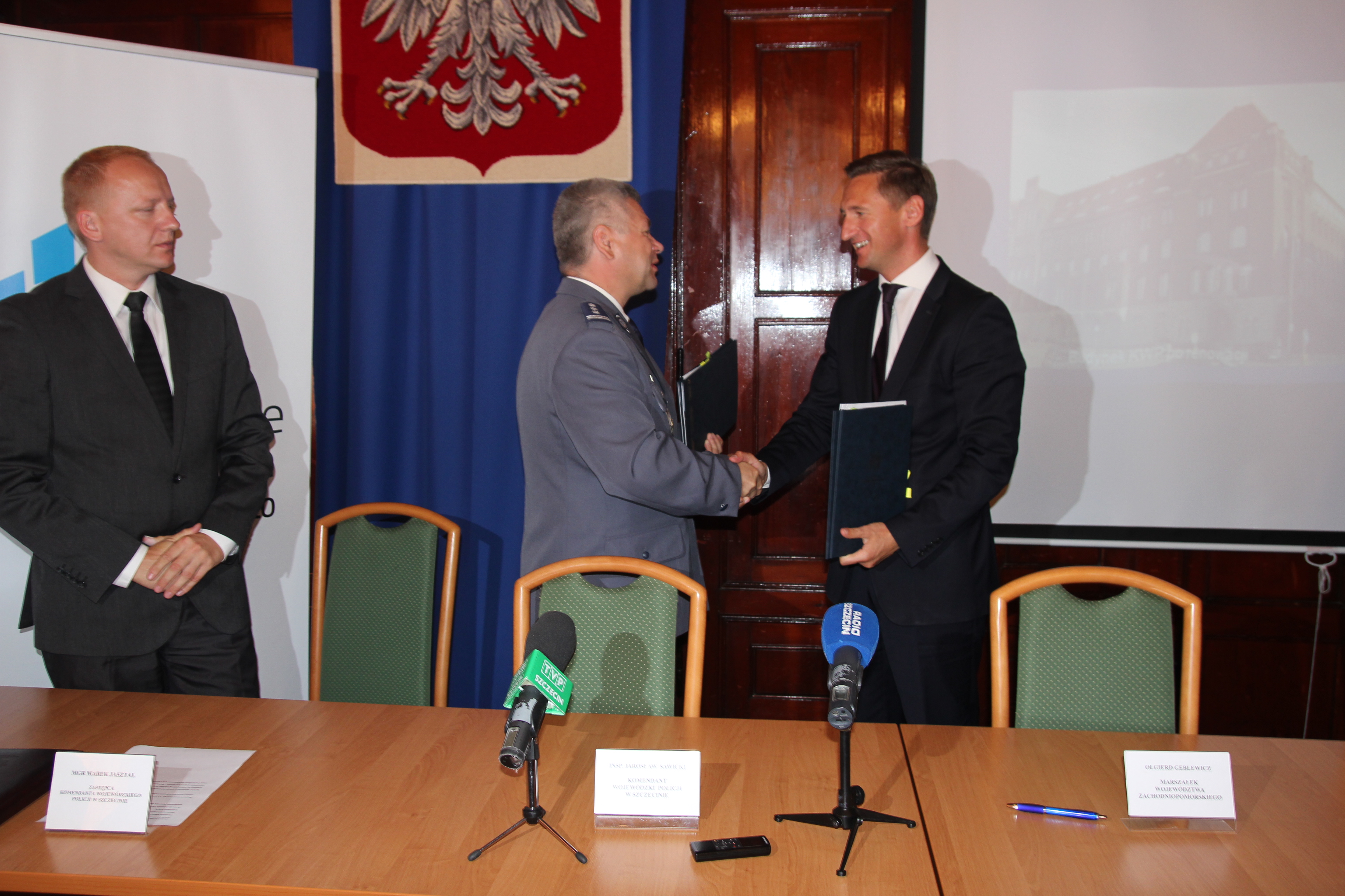 Już niebawem Komenda Wojewódzka Policji w Szczecinie będzie bardziej mobilna, a jej zabytkowy gmach doczeka się pełnej renowacji. Realizacja tych dwóch ważnych zadań otrzyma wsparcie z Regionalnego Programu Operacyjnego Województwa Zachodniopomorskiego na lata 2007-2013. Wyniesie ono prawie 5,5 miliona złotych. Umowy w tej sprawie podpisali dziś, w piątek, 8 sierpnia br. w Szczecinie: komendant wojewódzki policji Jarosław Sawicki i marszałek Województwa Zachodniopomorskiego Olgierd Geblewicz.
