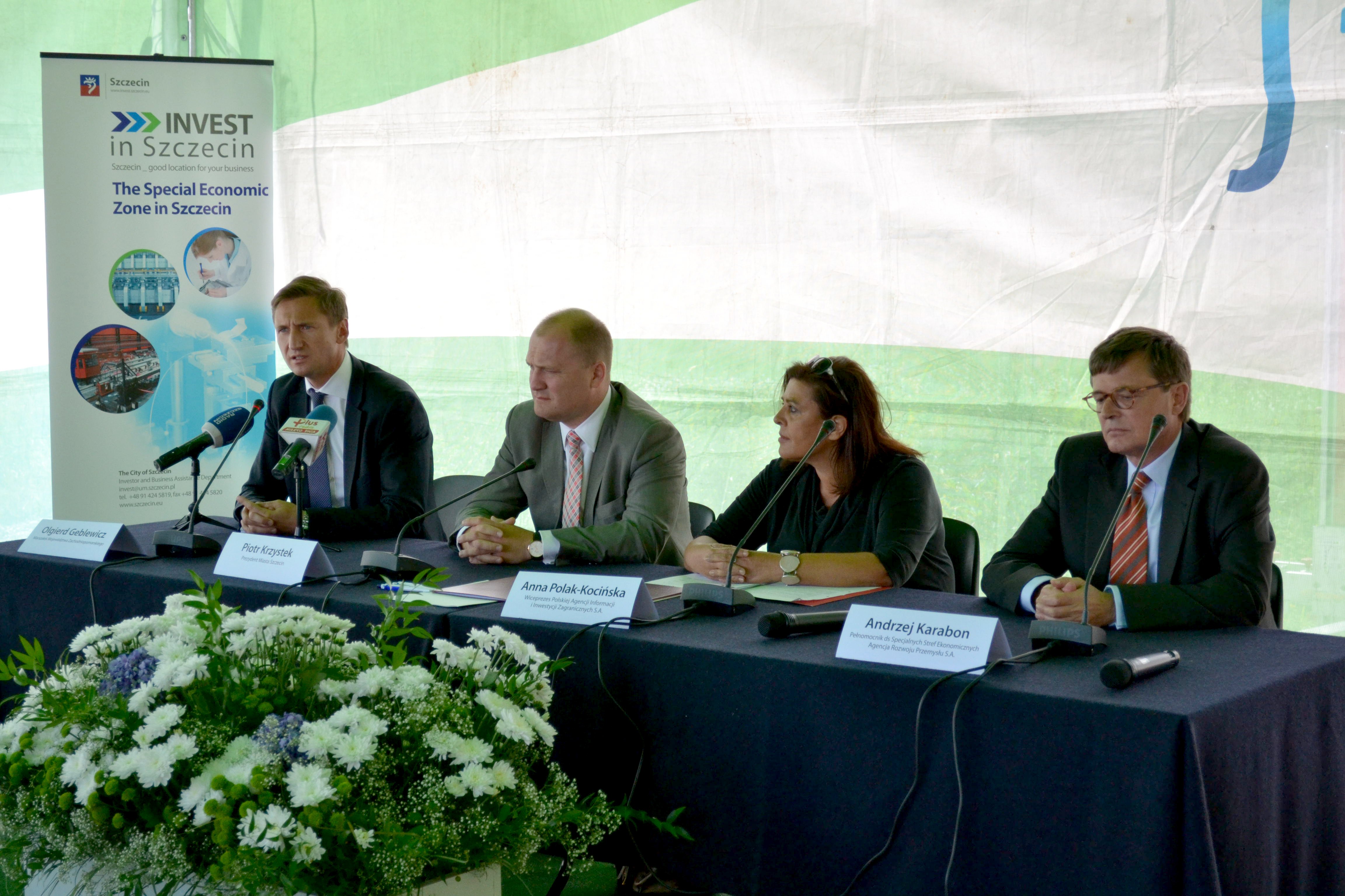 Uroczyste zakończenie inwestycji, z udziałem marszałka województwa Olgierda Geblewicza, prezydenta Szczecina Piotra Krzystka, wiceprezes Polskiej Agencji Informacji i Inwestycji Zagranicznych Anny Polak-Kocińskiej oraz Andrzeja Karabona pełnomocnika ds. Specjalnych Stref Ekonomicznych Agencji Rozwoju Przemysłu, odbyło się w środę, 20 sierpnia br. w Szczecinie.