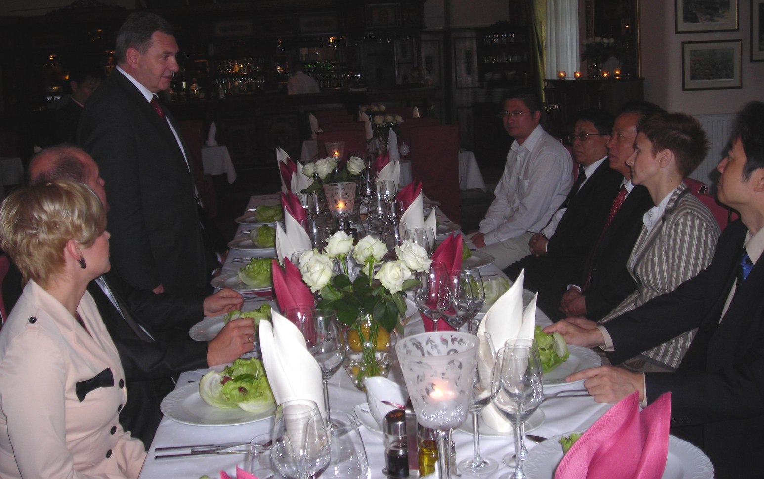 Uroczysty obiad z udziałem Marszałka Władysława Husejki, Prezydenta Miasta Piotra Krzystka, Wiceprzewodniczącego Sejmiku Zygmunta Dziewgucia oraz prof. Edwarda Urbańczyka zakończył wizytę delegacji w naszym regionie. Wśród wielu interesujących kwestii poruszanych w trakcie obiadu były między innymi: współpraca uczelni wyższych (w tym środowisk naukowych, tworzenie wspólnych projektów badawczych, wymiana studentów) oraz tematy gospodarcze (rozwój nowych technologii oraz kryzys ekonomiczny, który również dotknął prowincję Guangdong).