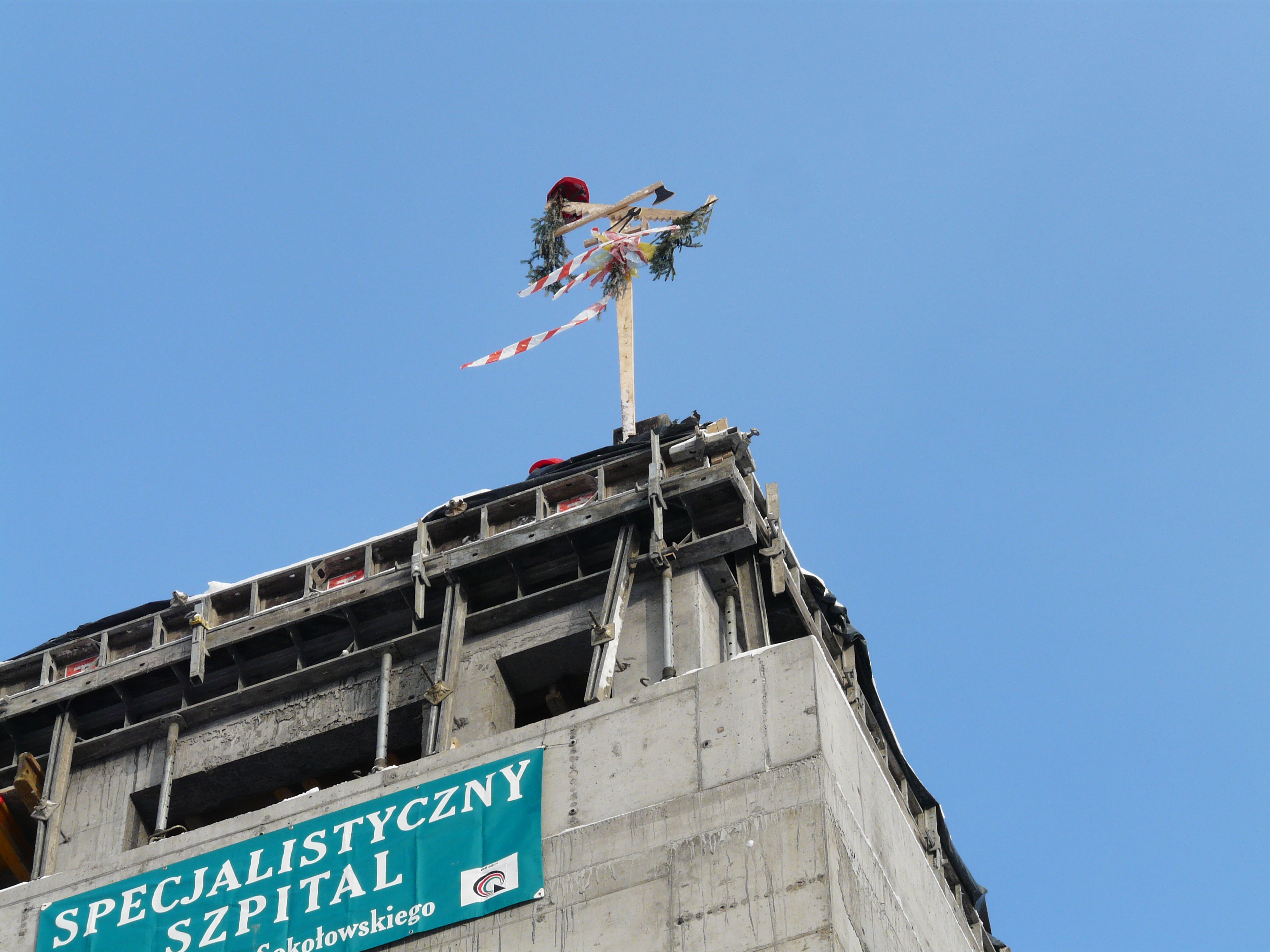 Członek Zarządu Województwa Marek Hok wziął udział w uroczystości zawieszenia WIECHY podkreślającej zakończenie pierwszego etapu budowy nowego skrzydła głównego w gmachu szpitala w Szczecinie-Zdunowie.