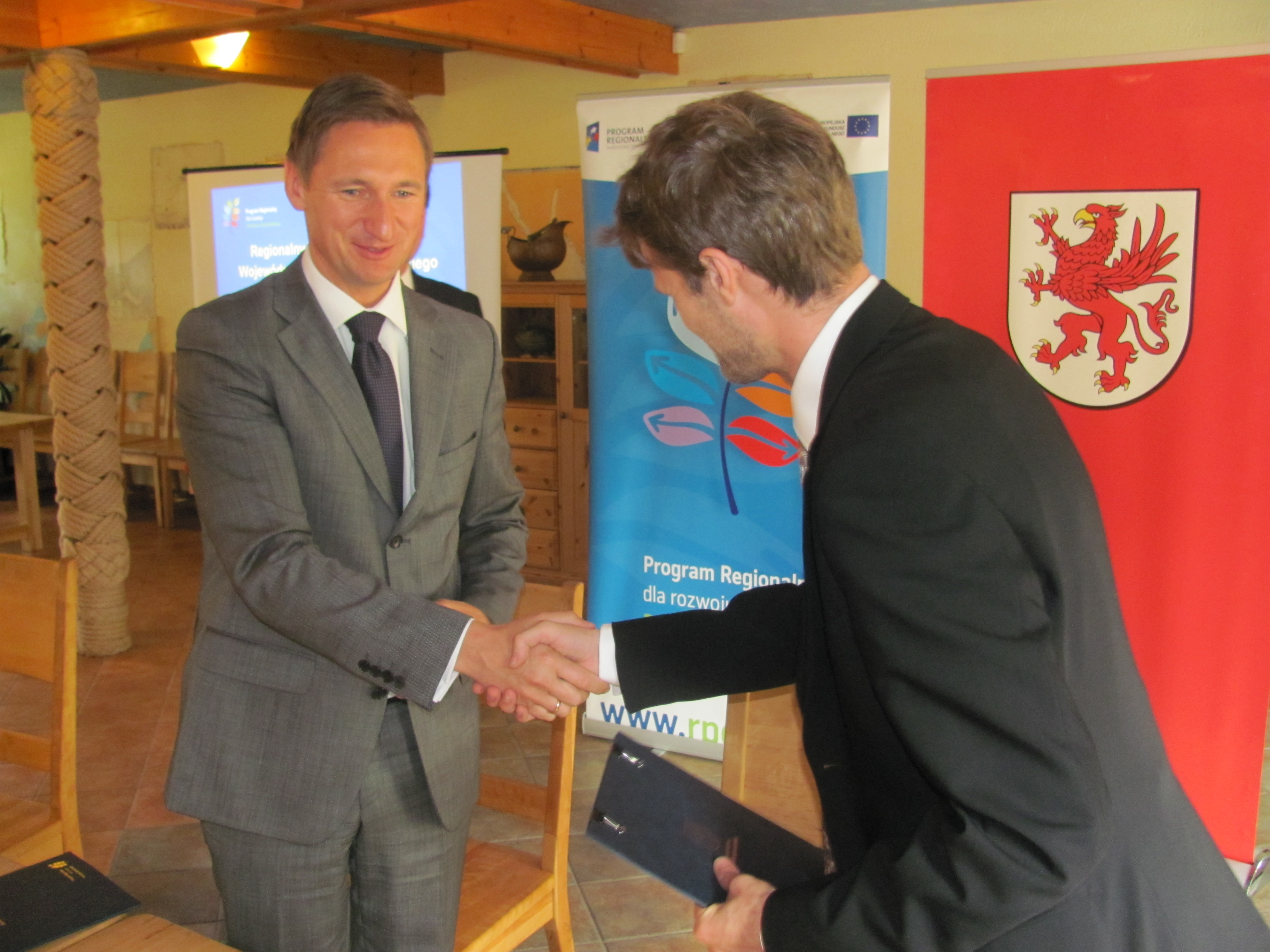 Wicemarszałek Andrzej Jakubowski podkreślił zaawansowanie realizacji wdrażania RPO w naszym regionie: – Tysięczna umowa świadczy o tym, że  w realizacji naszego RPO jest duży postęp. Dzięki tak pewnym partnerom jak dzisiejszy beneficjent, wszystkie środki z RPO do roku 2013 zostaną w pełni wykorzystane – mówił. Na dobrą wróżbę marszałkowie wręczyli przedstawicielom firmy skromny upominek - portfel, który – jak życzyli marszałkowie – beneficjent ma wypełnić zamówieniami.