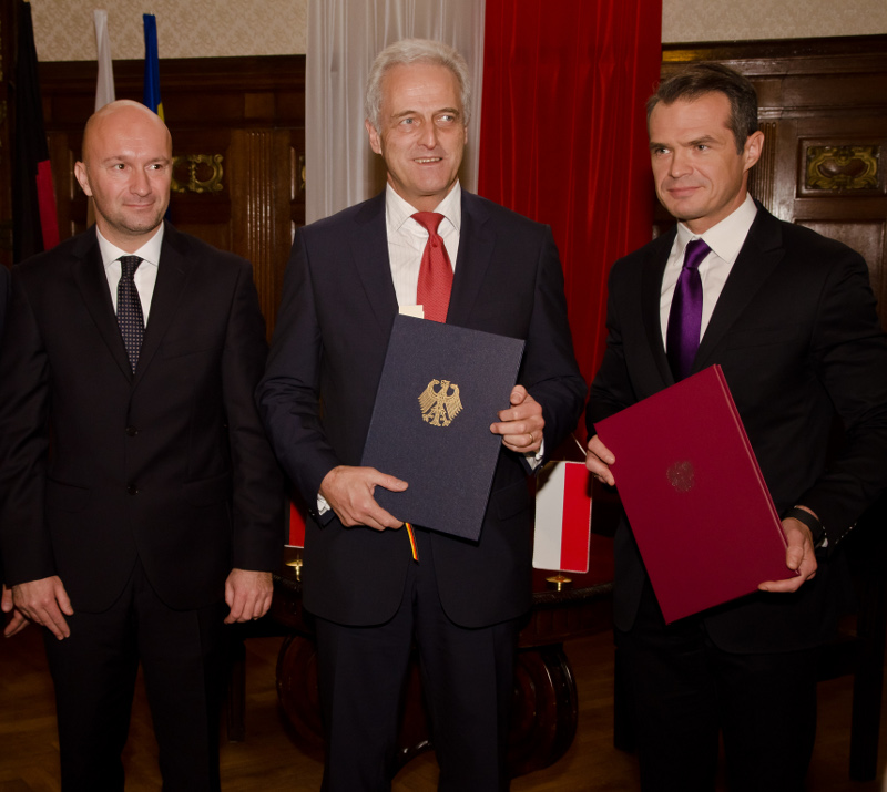 Długo oczekiwana umowa o współpracy w zakresie rozwoju i modernizacji połączenia kolejowego Berlin Szczecin stała się faktem. Sygnatariuszami umowy podpisanej 20 grudnia w Zachodniopomorskim Urzędzie Wojewódzkim są Minister Transportu, Budownictwa i Gospodarki Morskiej Sławomir Nowak oraz Minister Transportu, Budownictwa i Rozwoju Miast RFN Peter Ramsauer.