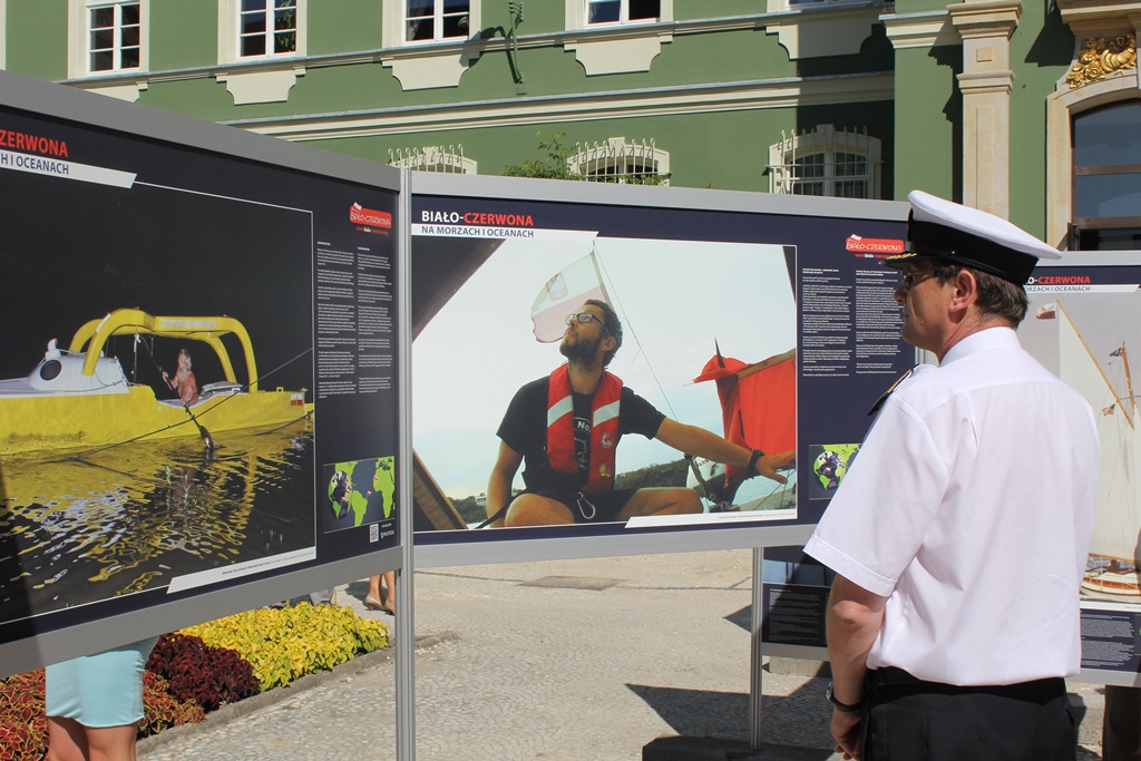 Wystawa ‘Biało-czerwona na morzach i oceanach” na 42 planszach prezentuje osiągnięcia polskich żeglarzy, kapitanów m.in.: Jacka Pałkiewicza, Henryka Jaskuły, Teresy Ramiszewskiej,  Krzysztofa Baranowskiego, Zbigniewa Gutkowskiego, Tomasza Cichockiego, Bolesława K. Kowalskiego, a także kajakarza – Aleksandra Doby, który jako pierwszy przepłynął kajakiem Atlantyk.  Ponadto obejrzeć będzie można nasze polskie żaglowce: "Dar Pomorza", "Dar Młodzieży", "Zawisza Czarny", "Fryderyk Chopin", "Pogoria", "Generał Zaruski", "Lwów".