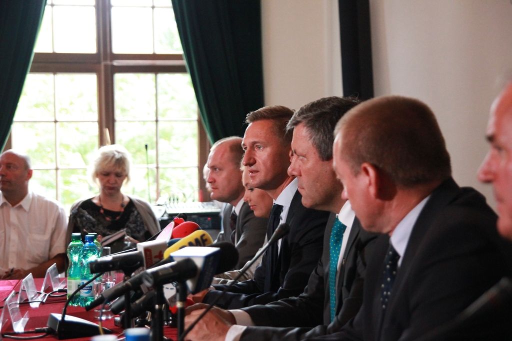 Marszałek Olgierd Geblewicz otwierając spotkanie rozpoczął od podziękowań, które adresował do wszystkich uczestników działań na rzecz poszerzenia granic SSE. – To była gra zespołowa -  akcentował.  Jego zdaniem, zachodniopomorski potencjał wiele zyska po tej decyzji rządu. – Obecnie mamy już 836 ha specjalnych stref ekonomicznych do dyspozycji inwestorów – mówił marszałek – na prawie 400 ha toczy się już produkcja pełna parą. Następnie marszałek nawiązał do planowanych inwestycji KSO i Teleyardu. Deklarował daleko idącą pomoc przy realizacji projektów, czego dowodem było symboliczne przekazanie w ręce dyrektora Piotra Sussa Uchwały Zarządu Województwa o przyznaniu dofinansowania na budowę przeprawy mostowo-drogowej na wyspę Gryfia.