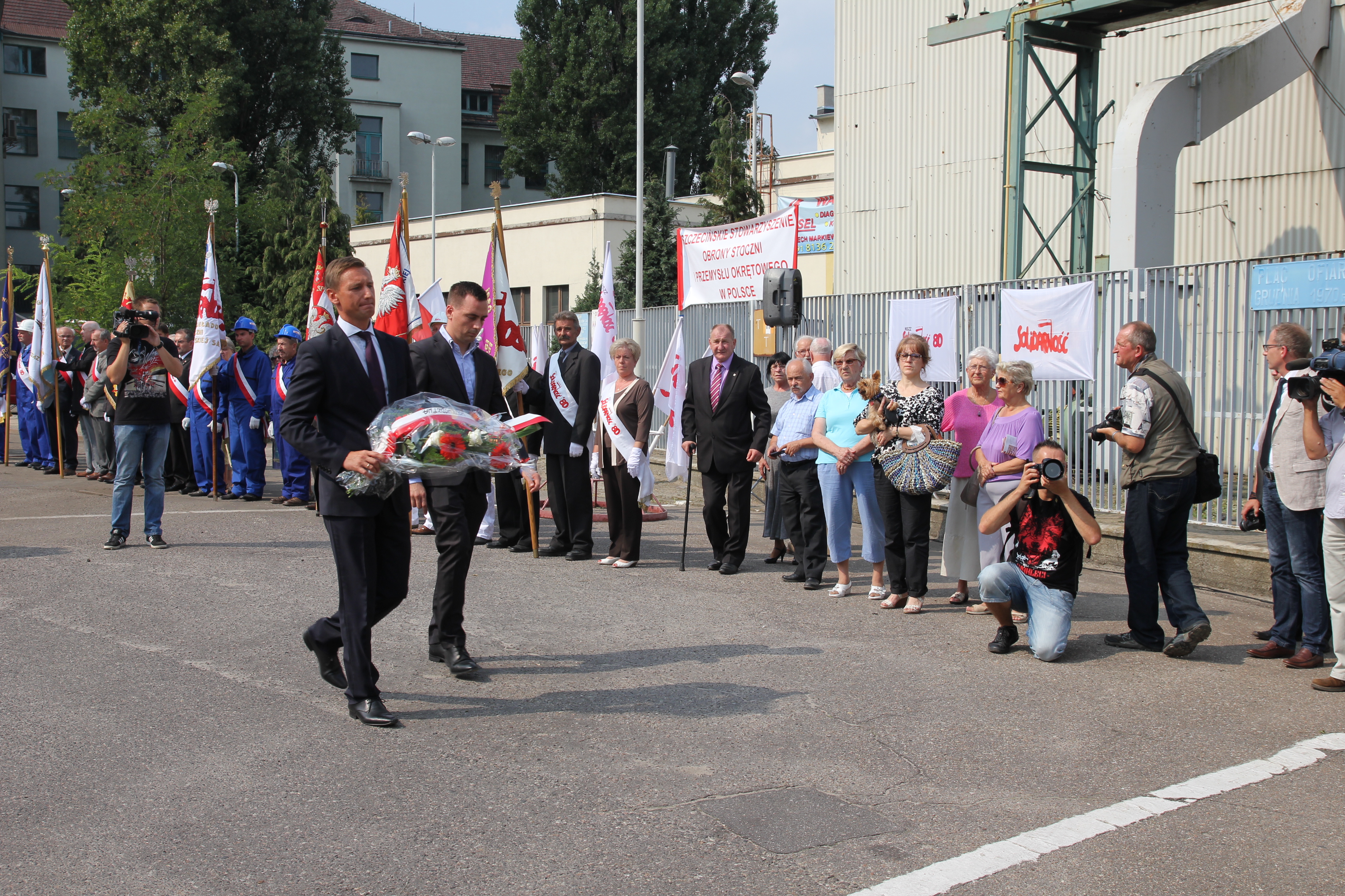 Główne uroczystości upamiętniające to historyczne wydarzenie rozpoczęły się w Szczecinie, o godzinie 12:00 przed bramą stoczni szczecińskiej, modlitwą Anioł Pański. Uczestniczył w nich marszałek Olgierd Geblewicz. Obecni byli również m.in. wicewojewoda zachodniopomorski Ryszard Mićko, zastępcy prezydenta Szczecina: Krzysztof Soska i Piotr Mync oraz dyrektor szczecińskiego oddziału IPN Marcin Stefaniak. Marszałek Olgierd Geblewicz złożył kwiaty pod tablicą upamiętniających poległych w 1970 roku robotników.
