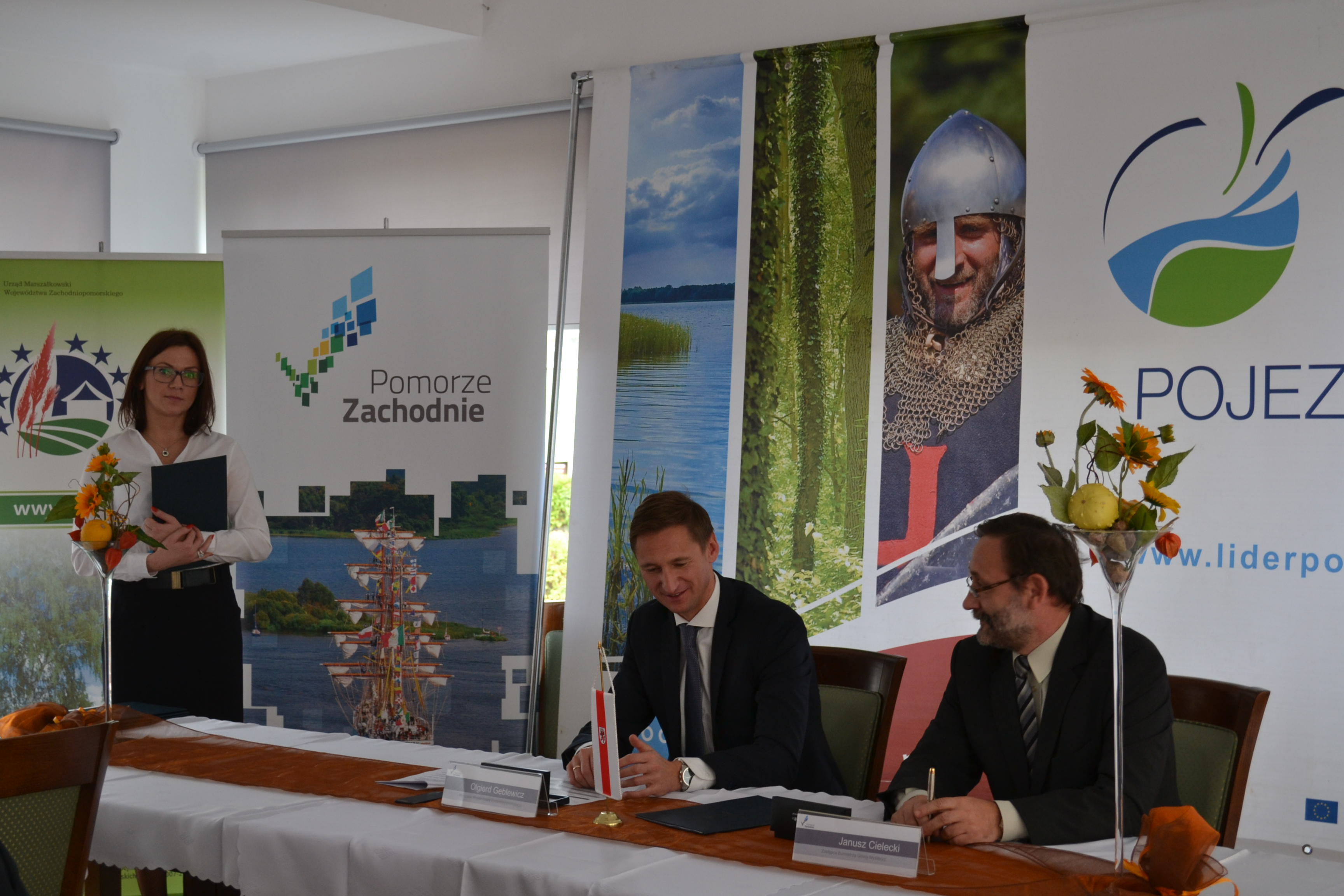 Dwie umowy realizowane w ramach działania 413 "Wdrażanie lokalnych strategii rozwoju" w zakresie działania "Odnowa i rozwój wsi" oraz cztery umowy w ramach działania 413c "Wdrażanie lokalnych strategii rozwoju" w zakresie tzw. „małych projektów”, objętych Programem Rozwoju Obszarów Wiejskich na lata 2007-2013 zostały podpisane wczoraj, w środę 23 października br., przez marszałka Województwa Zachodniopomorskiego Olgierda Geblewicza w Barlinku.