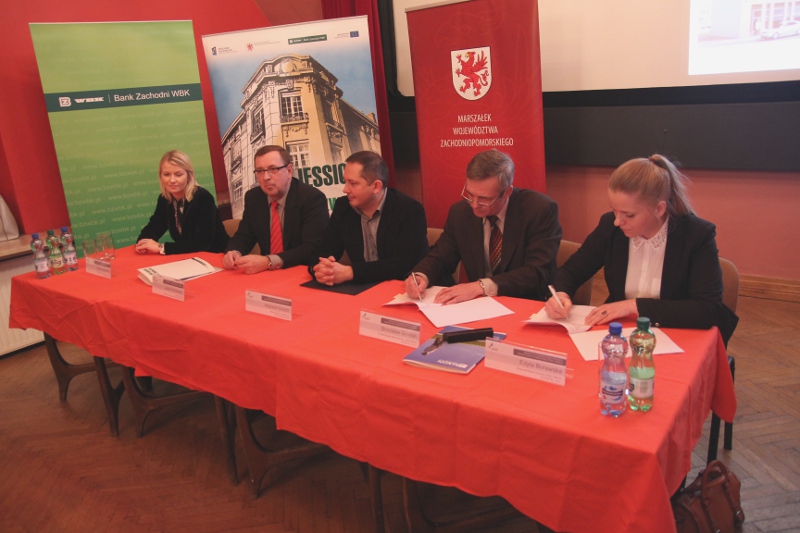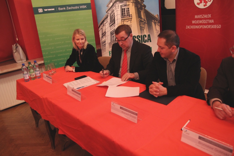 Dziś, 30 października, w obecności wicemarszałka Wojciecha Drożdża, przedstawiciele  Banku Zachodniego WBK S.A., pełniącego w ramach Inicjatywy JESSICA Województwa Zachodniopomorskiego funkcję Funduszu Rozwoju Obszarów Miejskich dla Szczecińskiego Obszaru Metropolitalnego (SOM) podpisali z przedstawicielami firmy ALKON umowę o wsparciu projektu.